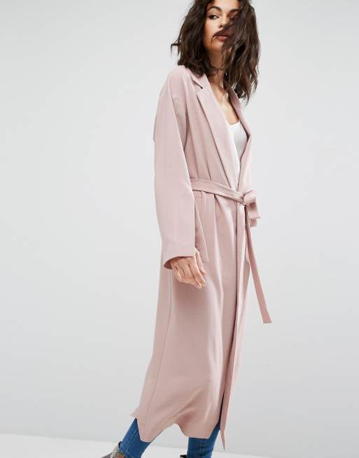Want a chic long-length outerwear look that wont swamp you. A woven duster jacket featuring notched lapels long sleeves with self-tie cuff detailing a sash belt double-breasted front and a longline hem. 36 out of 5 stars.