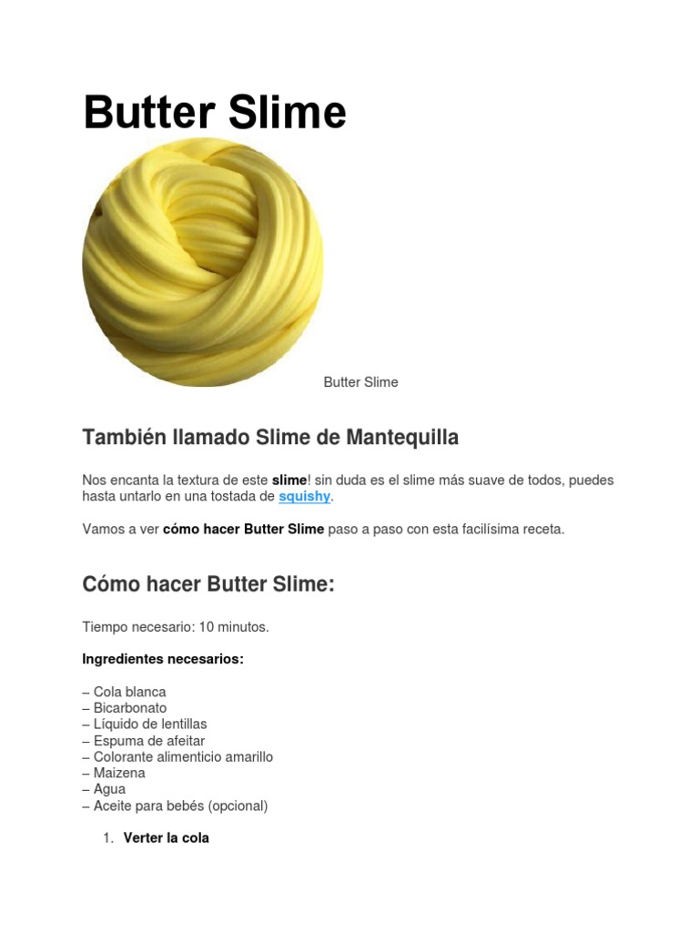 Este es un juguete hecho con una consistencia mezclada con colorante pegamento almidón aromatizante bicarbonato detergente y agua. Cuando la mezcla empiece a formar espuma pon el colorante. Receta de Slime con Bicarbonato y sin bórax.