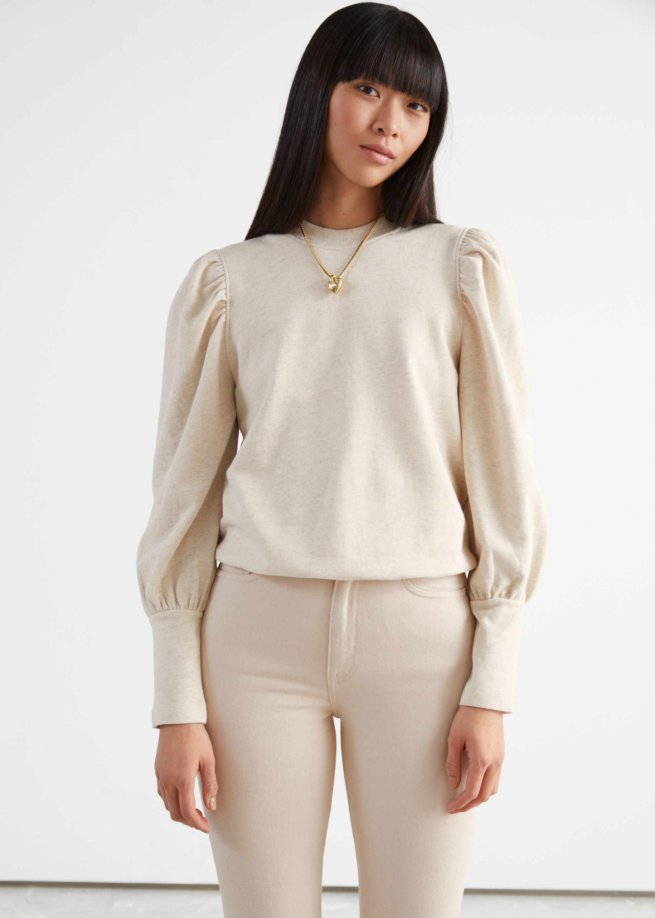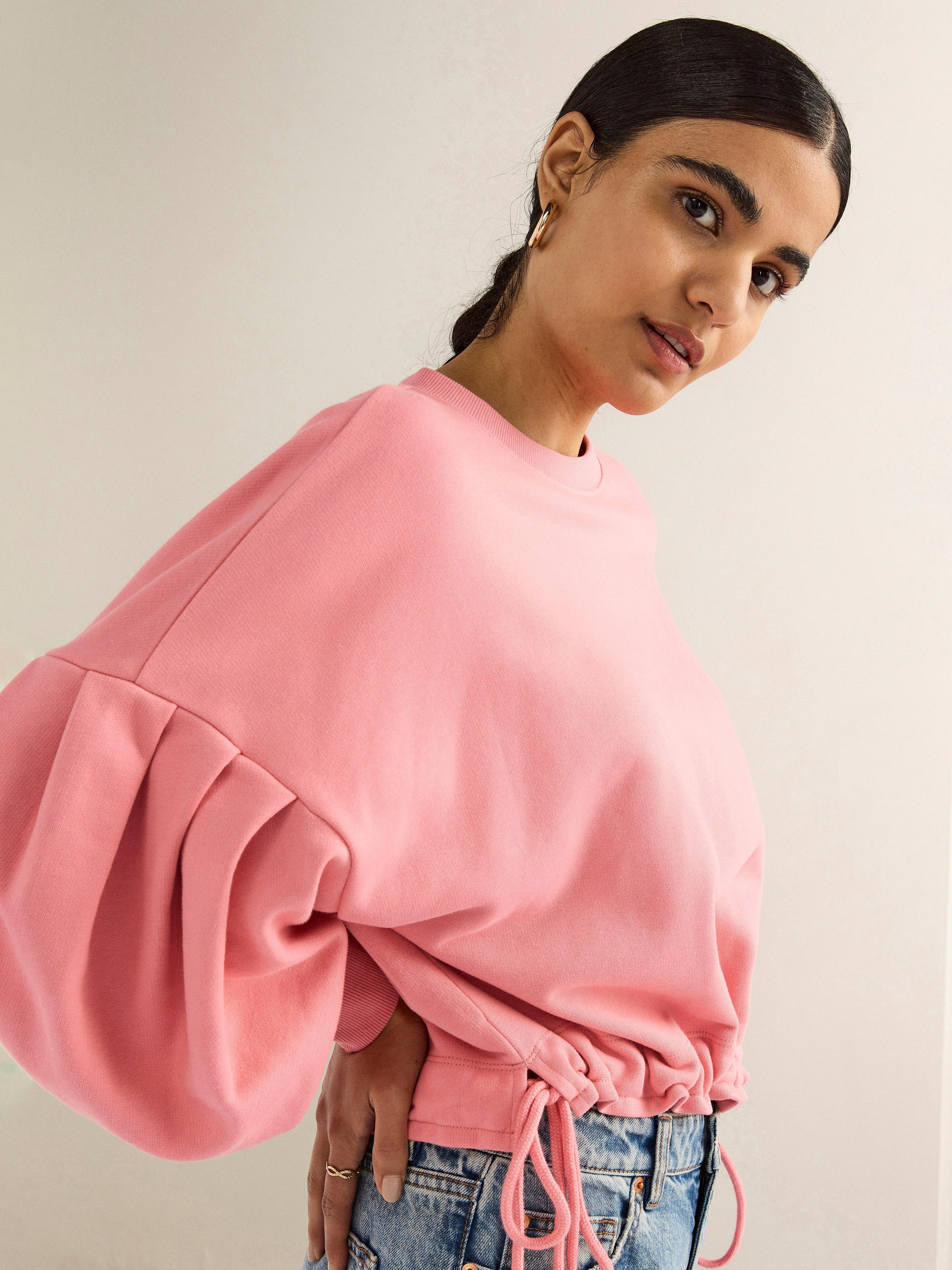 I love the sort of cropped swingy body of it and the sleeve detail is a perfect touch of drama. This relaxed fit sweatshirt with balloon sleeves is cut from a heavyweight structured fabric with some stretch and a soft fleece-like inside. PRODUCT DETAILS 81.