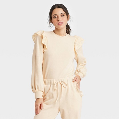 Sweatshirt puff sleeves. Embroidered flaps on the shoulders. Add to cart You loved the short sleeve so much. Machine Wash Cold Inside Out.